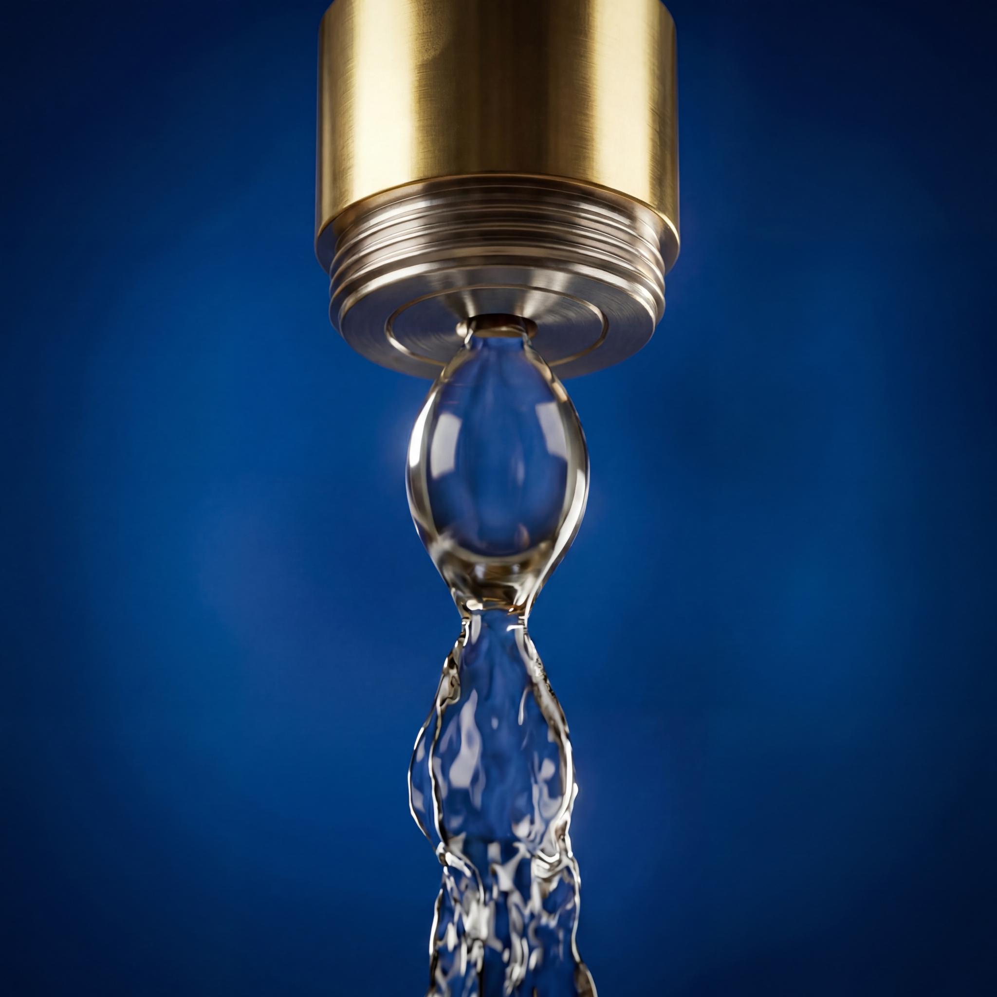 Ein Bild des Wirblers für den Wasserhahn ohne den Siebauslauf. Man sieht, wie das Wasser in Form einer 8 aus aus dem