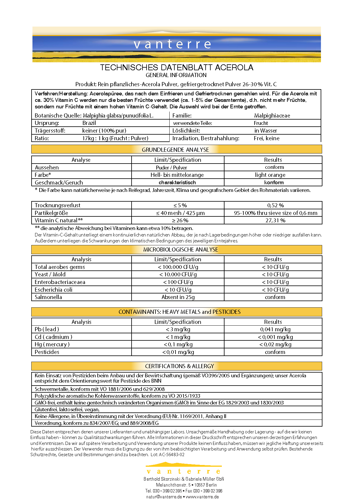 Therefore, vitamin C values vary depending on the vintage and harvest between 25% and sometimes a little over 30%.