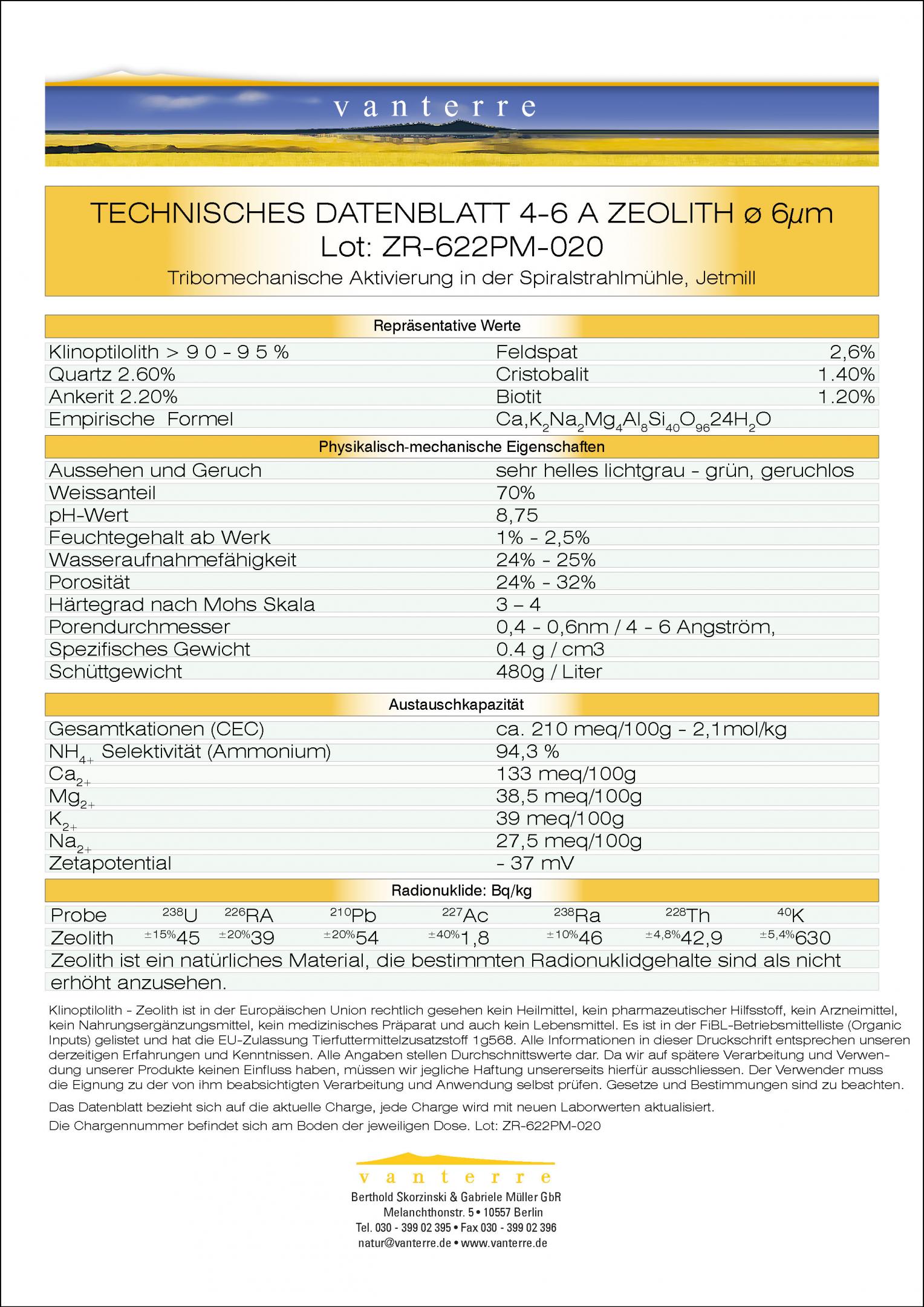 v a n t e r r e - 1400g de zéolite naturelle micronisée très fine vanterre - Klinoptilolite HF ø 6µm. Teneur en clinoptilolite d'environ 95%. Notre zéolite est extraite dans la ceinture des Carpates selon les spécifications de nos fournisseurs autrichiens, d'abord broyée en Autriche dans un moulin à bol à rouleaux / moulin à marteaux jusqu'à environ 125 µm (micron). Ensuite, elle est broyée dans le processus de jet mill (broyeur à jet spiralé, développement ultérieur de l'activation tribomécanique) par le fabricant de moulin et un prestataire de services spécialisé dans le courant d'air à travers la collision de particules / particules jusqu'à ø 6µm (micron) et ainsi hautement activée. Cette activation ne peut être obtenue avec aucun autre processus de fragmentation. Les particules de zéolite "frottent" les unes contre les autres à environ 300 km/h dans le courant d'air jusqu'à ce qu'elles aient la taille appropriée. Il est donc également appelé processus "sans corps broyants". Notre zéolite ne contient pas de nanoparticules. 1400g dans la boîte de 3 litres sans BPA.