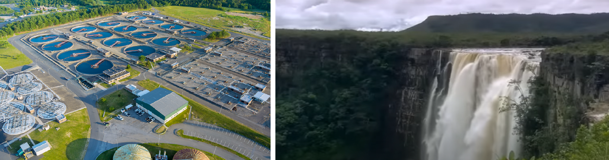 A sinistra: un moderno impianto di depurazione; a destra: una cascata su un altopiano venezuelano, rimasto incontaminato dall'uomo per 2 miliardi di anni, dove fino a circa 100 anni fa era semplicemente impossibile arrivare perché l'altopiano è circondato da pareti verticali alte 800 metri. Secondo lo scienziato russo Prof. Dr. Konstantin Korotkov, l'acqua che si trova lì non dovrebbe essere paragonata alla nostra acqua convenzionale, poiché possiede 40.000 volte più energia e, secondo lui, si tratta in realtà di una sostanza diversa. • • • Tuttavia, è acqua • • • H2O :-))