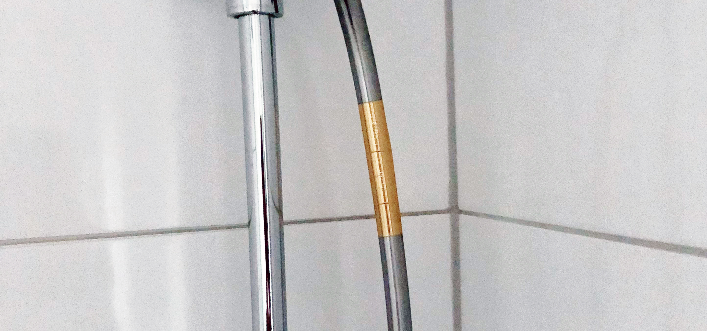Voorbeeld van het vastplakken van de folie op de doucheslang: