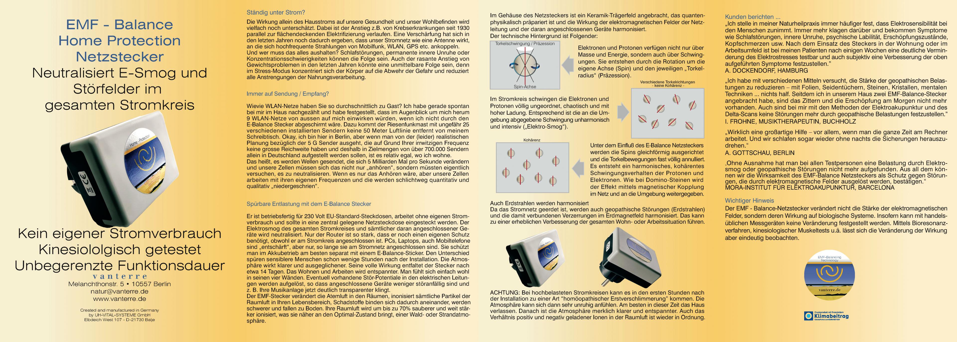 Op grond van wettelijke bepalingen zijn wij verplicht erop te wijzen dat de hier gepresenteerde technologie en haar effecten niet door de reguliere wetenschap worden erkend – net als bij homeopathie of bioresonantie. De producten van vanterre Energy zijn geen geneesmiddelen of medische hulpmiddelen en vervangen evenmin het consult van een natuurgeneeskundige of arts.