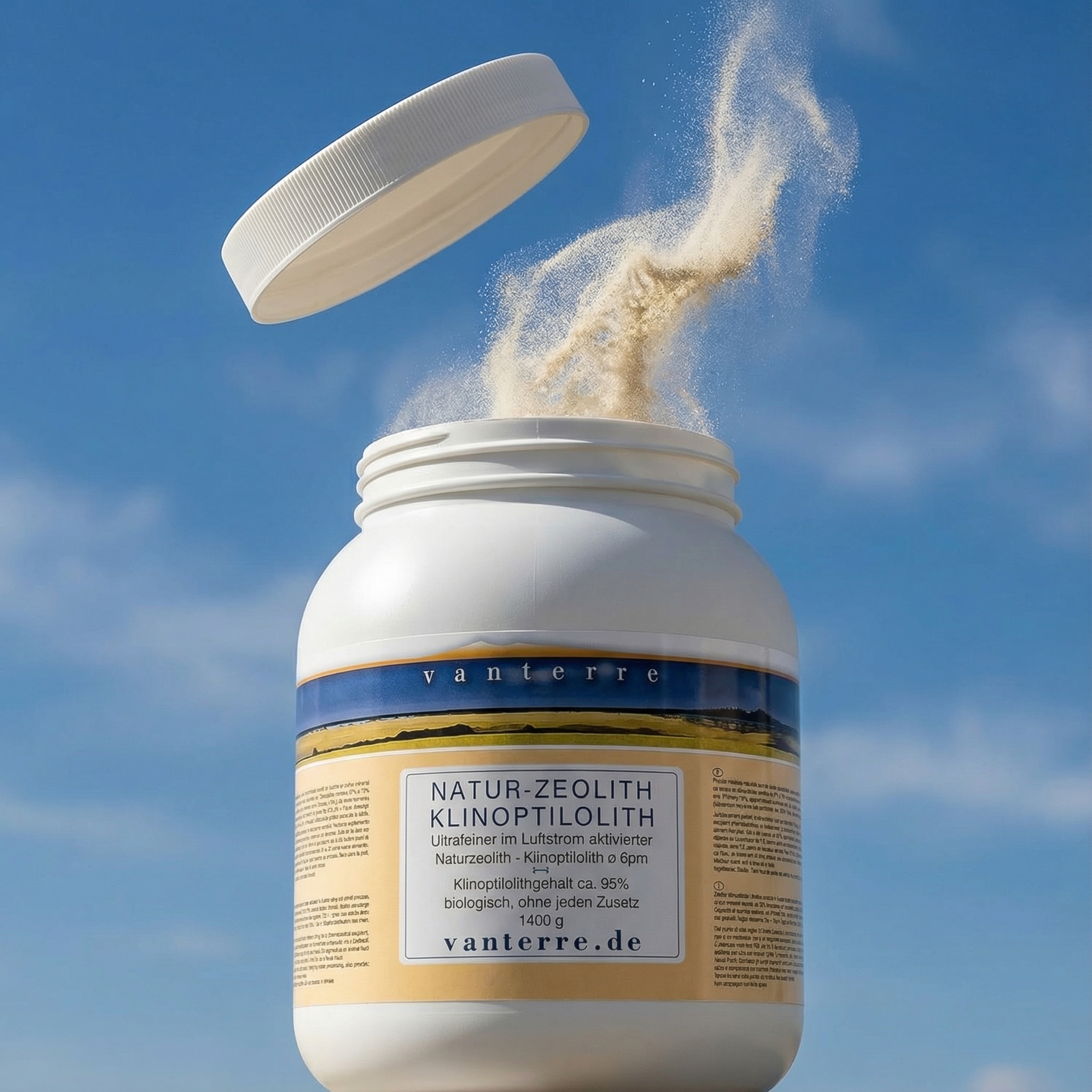 v a n t e r r e - 1400g ultrafeiner mikronisierter Naturzeolith - Klinoptilolith HF ø 6µm. Klinoptilolithgehalt ca. 95%. Keine Nanopartikel. Unser Zeolith wird im Karpatengürtel nach den Vorgaben unserer österreicher Lieferanten abgebaut, in Österreich zuerst in einer Walzenschüsselmühle / Hammermühle auf ca. 125 µm (Mikron) vermahlen. Danach wird er im Jetmillverfahren (Spiralstrahlmühle, Weiterentwicklung der tribomechanischen Aktivierung) vom Hersteller der Mühlen und einem spezialisierten Dienstleister im Luftstrom durch Teilchen / Teilchen Kollision auf ø 6µm (Mikron) vermahlen und dabei hochgradig aktiviert. Diese Aktivierung lässt sich mit keinem anderen Zerkleinerungsverfahren erreichen. Die Zeolith Partikel "reiben" bei ca. 300 km/h so lange im Luftstrom aneinender, bis sie die entsprechende Größe haben. 1400g in der BPA-freien 3 Liter Dose.